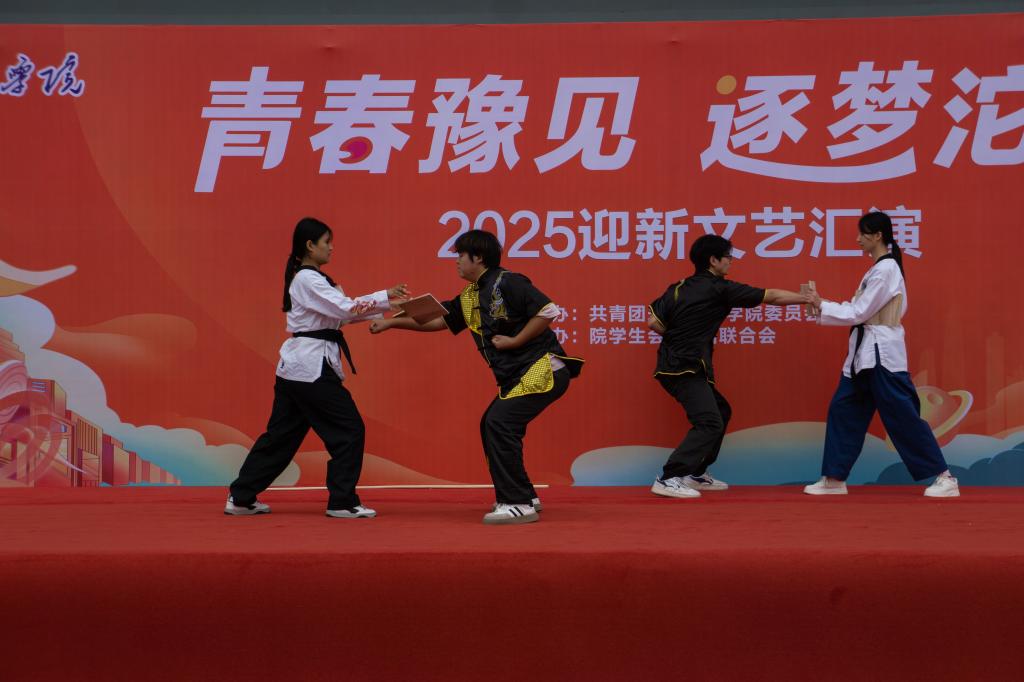 10月14日下午,我院“青春豫见 逐梦沱河”2025年迎新文艺汇演在运动场拉开帷幕。院党委委员、工会主席刘福奎,院团委书记徐振,各系团总支书记、团委相关人员及500余名学生参加活动。