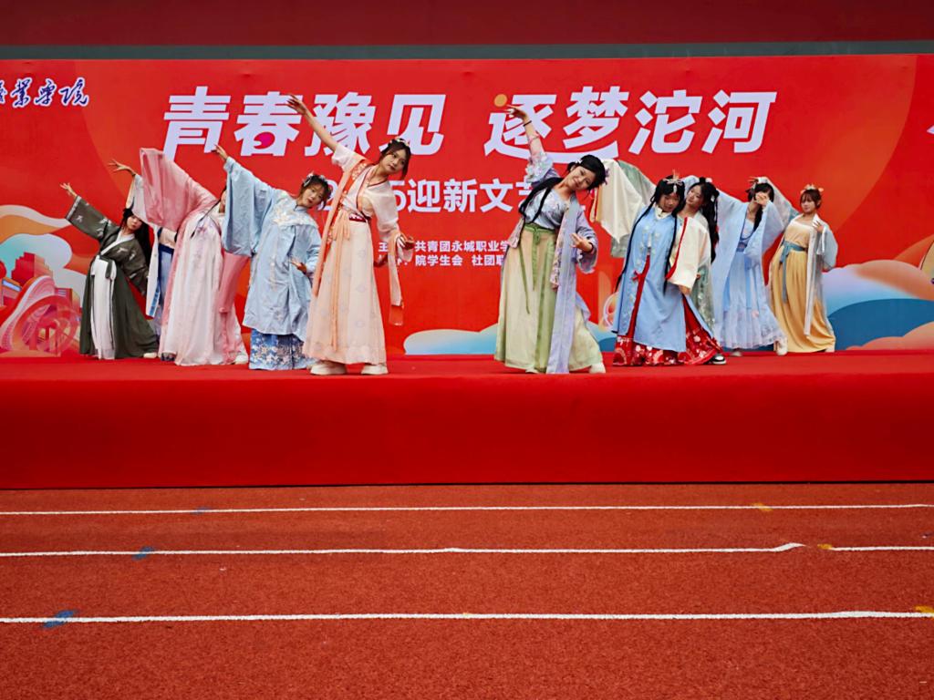 此次汇演由院社团联合会牵头组织,节目内容丰富、形式多样,充分展现了永职学子蓬勃向上的精神风貌。舞蹈协会带来的《舞动青春》活力四射,瞬间点燃现场气氛;话剧协会创作的情景剧《你好 同学》温情动人,引发新生共鸣;武术跆拳道协会的《武林风》刚劲有力,尽显中华武魂。音乐协会、朗诵协会、汉文化协会等学生社团也纷纷登台,献上《修炼爱情》《致橡树》《汉服秀》等精彩节目。动漫协会的cosplay展示与舞蹈协会融合民族元素的《拉丁+彩云之南》更是赢得现场阵阵掌声。最后,手语协会表演的《感恩的心》,以真挚情感为整场演出画上温暖句号。