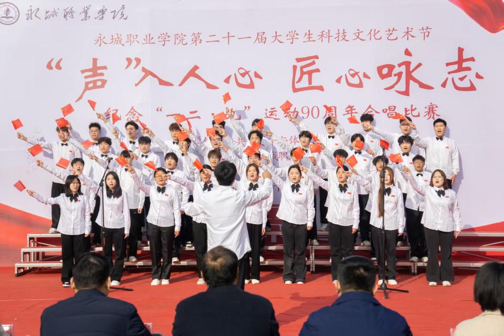 本次合唱比赛作为我院大学生科技文化艺术节的重要组成部分,由公共课教学与体育艺术中心、院团委、文化艺术系联合承办,是学院落实“以美育人、以文化人”教育理念的具体举措。各承办单位党政负责人、电子信息工程系党支部负责人、各系团总支书记与500余名学生代表共同聆听了这场红色视听盛宴。(文/吕清 图/吕起)