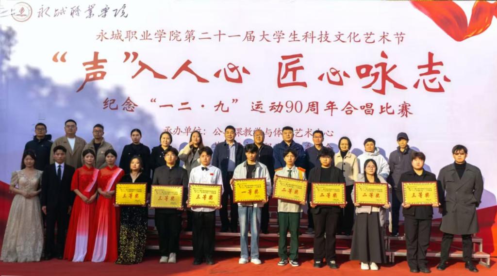 经过近三个小时的激烈角逐,由公共课教学与体育艺术中心及文化艺术系音乐教研室的7名专业教师组成的评委团从演唱技巧、情感表达、团队协作等多个维度进行评审,最终文化艺术系丹心筑梦合唱队凭借《抗日歌曲联唱》的精彩表现脱颖而出,摘得本次比赛的冠军。