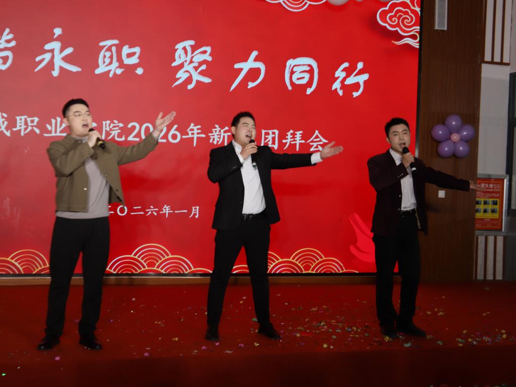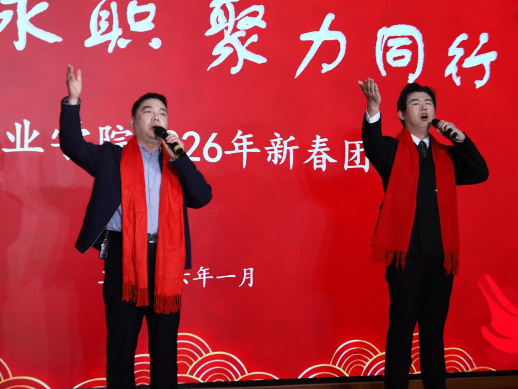 和谐永职,聚力同行。1月14日,我院2026年新春团拜会在餐厅二楼温情启幕。院领导叶长青、苗向锋、刘福奎、操龙坤与全体教职工欢聚一堂,载歌载舞共庆新春佳节,回望砥砺奋进的过往岁月,共绘学院高质量发展的崭新蓝图。