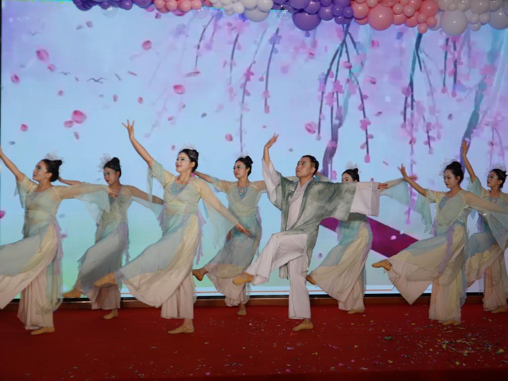 文艺演出随后精彩上演。舞蹈《春满永职》灵动展现校园蓬勃生机,瞬间点燃现场氛围;男声独唱《洒下一片深情》,以悠扬歌声传递对校园与同事的真挚情谊;《第一天》节奏明快、活力四射,彰显永职人奔赴新征程的昂扬姿态。民族歌曲联唱汇聚多元风情,通俗歌曲联唱勾起青春回忆,诗・歌《滚滚长江东逝水》尽显豪迈,《声声慢》演绎温婉,《走过咖啡屋》重温难忘时光,《风吹麦浪》带来清新治愈的视听体验。三句半《我爱上班》《骐骥启新程 永职谱新篇》以幽默诙谐的方式,诉说教育工作的乐趣与奋进决心;《绿叶对根的情意》诠释师生与母校的深厚联结,《共筑中国梦》唱出家国情怀与责任担当,《激情飞扬》展现追逐梦想的激情与力量。整场演出形式多样、内容丰富,赢得阵阵掌声与喝彩。